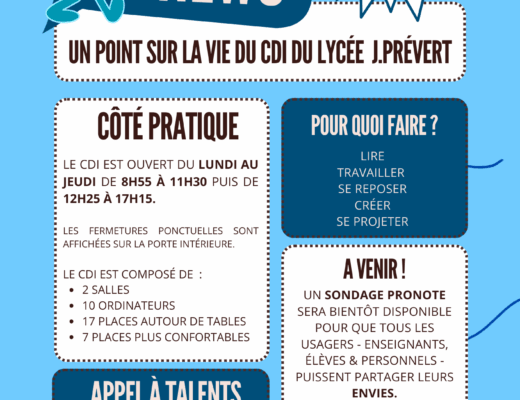 A partir de septembre 2025, Mme PARIS, professeure documentaliste, vous accueille au CDI. prst-CDI_site (pdf) Le Centre de Documentation et d’Information est ouvert du lundiRead More