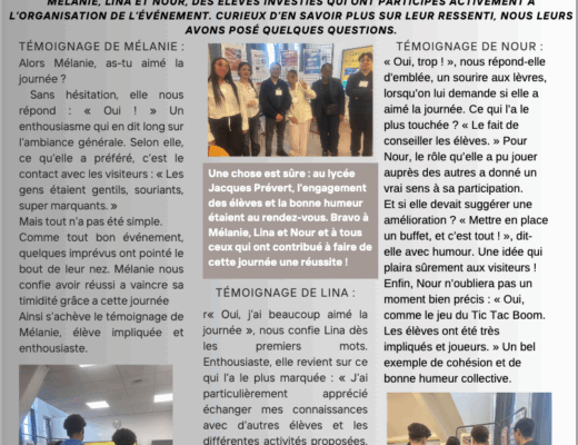 Dans le cadre de la journée portes ouvertes du 5 avril 2025, des élèves de la classe 2MRC2 ont interviewé des élèves volontaires qui ontRead More